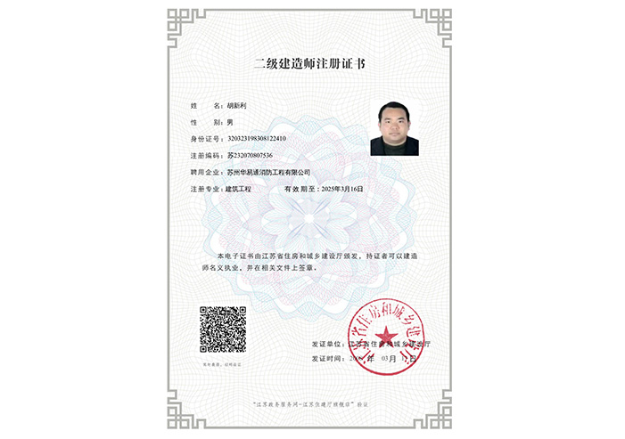 胡新利注冊建造師電子證書