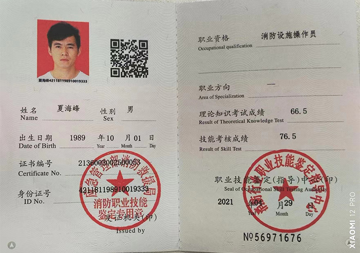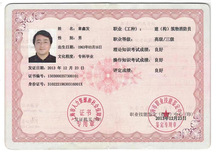 一級注冊消防工程師注冊證